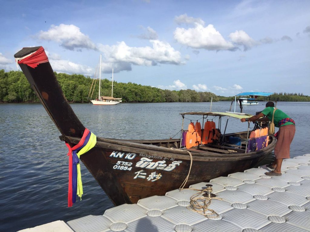 นักท่องเที่ยวสามารถไปเที่ยวชมเขาขนาบน้ำกันได้ โดยเช่าเรือหัวโทง (เรือโดยสาร อีกหนึ่งสัญลักษณ์ของเมืองกระบี่) ซึ่งเป็นเรือประมงในท้องถิ่น ที่ท่าเรือเจ้าฟ้า เป็นสถานที่เที่ยวใจกลางเมืองกระบี่ และยังง่ายต่อการเดินทางไป เนื่องจากการมีเรือรออยู่ที่หัวท่าอยู่แล้ว ตกต่อลำราคา 500บาท นั่งได้ประมาน 8 – 10 คน เวลาเดินทางจากท่าเรือไปถึงเขาประมาน10-15นาที