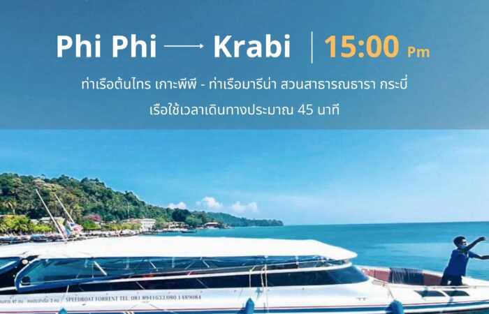 เวลารับส่งขึ้นอยู่กับตำแหน่งที่ตั้งของโรงแรม ในเขตเมืองกระบี่ หาดอ่าวนาง หาดคลองม่วง ซึ่งบริการรับส่งเป็นบริการฟรี ให้บริการโดยรถสองแถวพื้นเมืองเดินทางไปยังท่าเทียบเรือหาดนพรัตน์ธารา เพื่อเช็คอิน